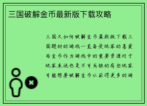 三国题材的游戏一直备受玩家的喜爱,而金币作为游戏中的重要资源,对于玩家来说也是不可或缺的。有些玩家可能想要破解金币以获得更多的游戏优势。本文将从多个方面详细阐述如何破解三国游戏中的金币,帮助玩家获取最新版的破解下载。